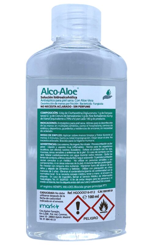 ALCO-ALOE GeL hidroalcohólico 100 ml – desinfectante de manos nivel quirúrgico con Aloe vera