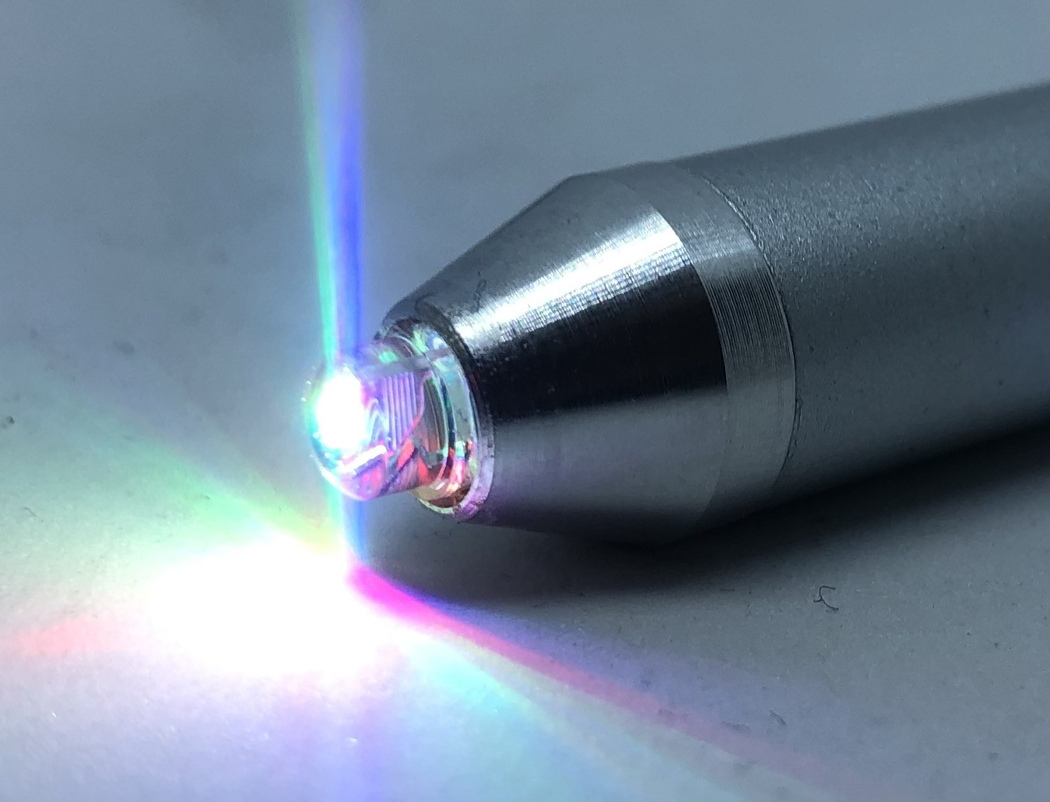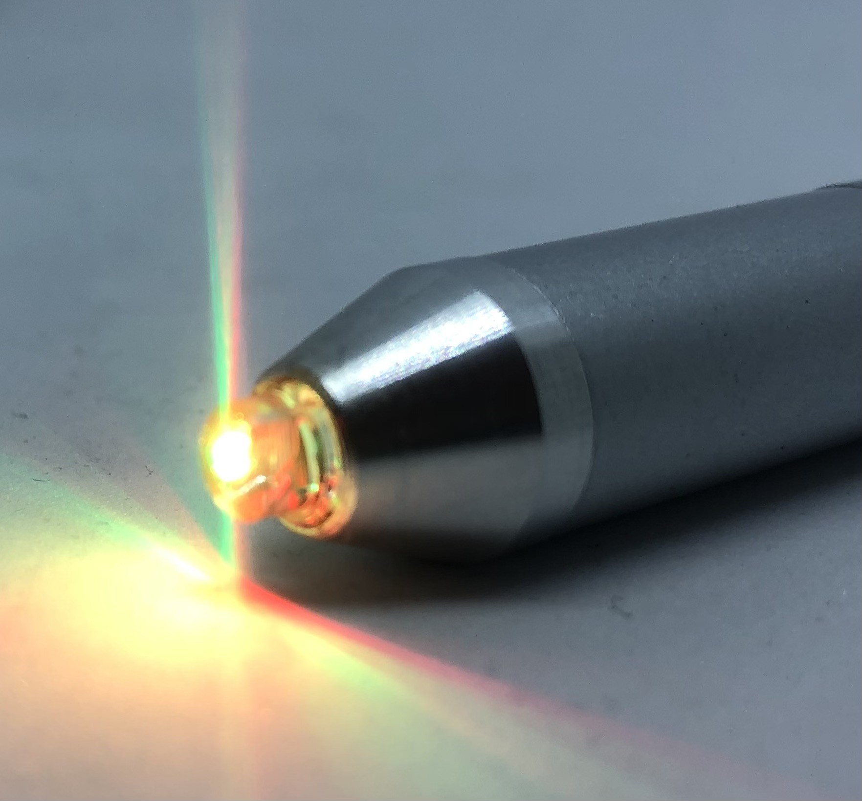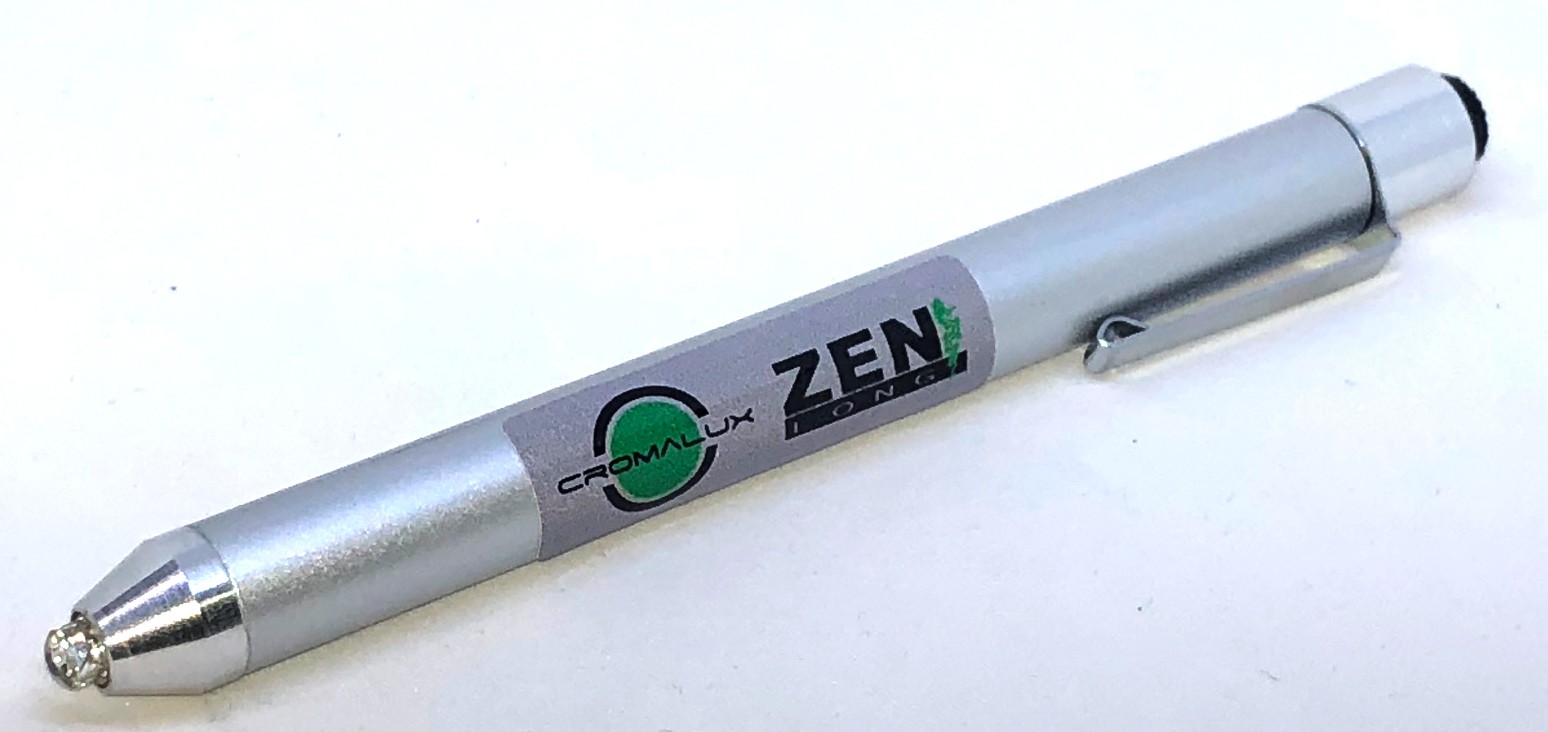 El CROMALUX-Pen está equipado con un diodo luminiscente que emite luz monocromática que en ciclos de 20 segundos aproximadamente cambia de color verde a rojo, azul y diversos colores mixtos para volver al color verde. La intensidad luminosa