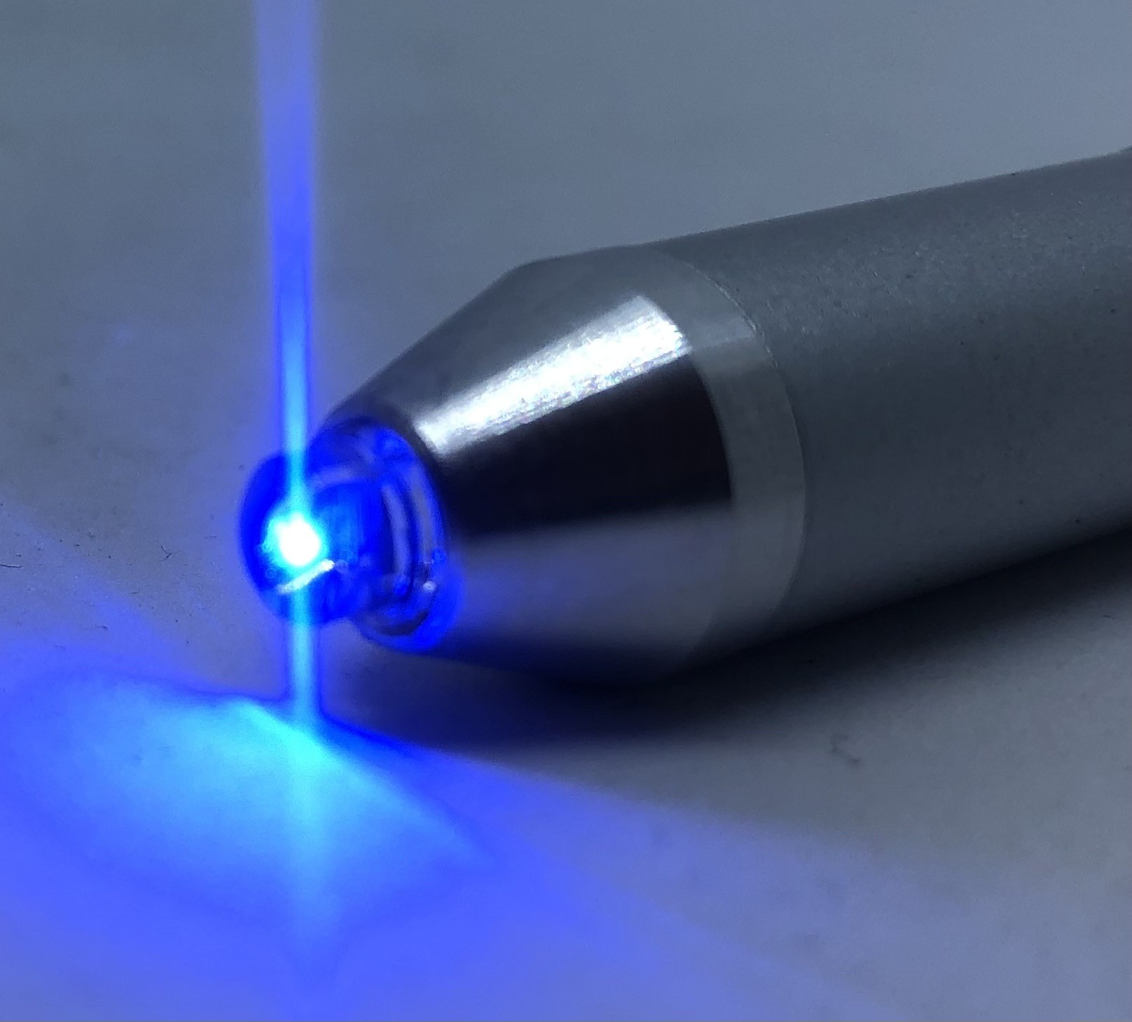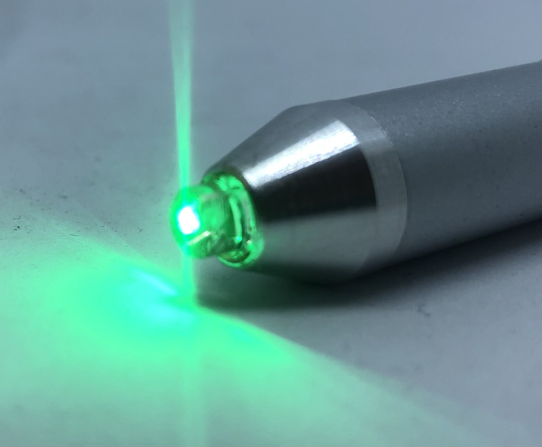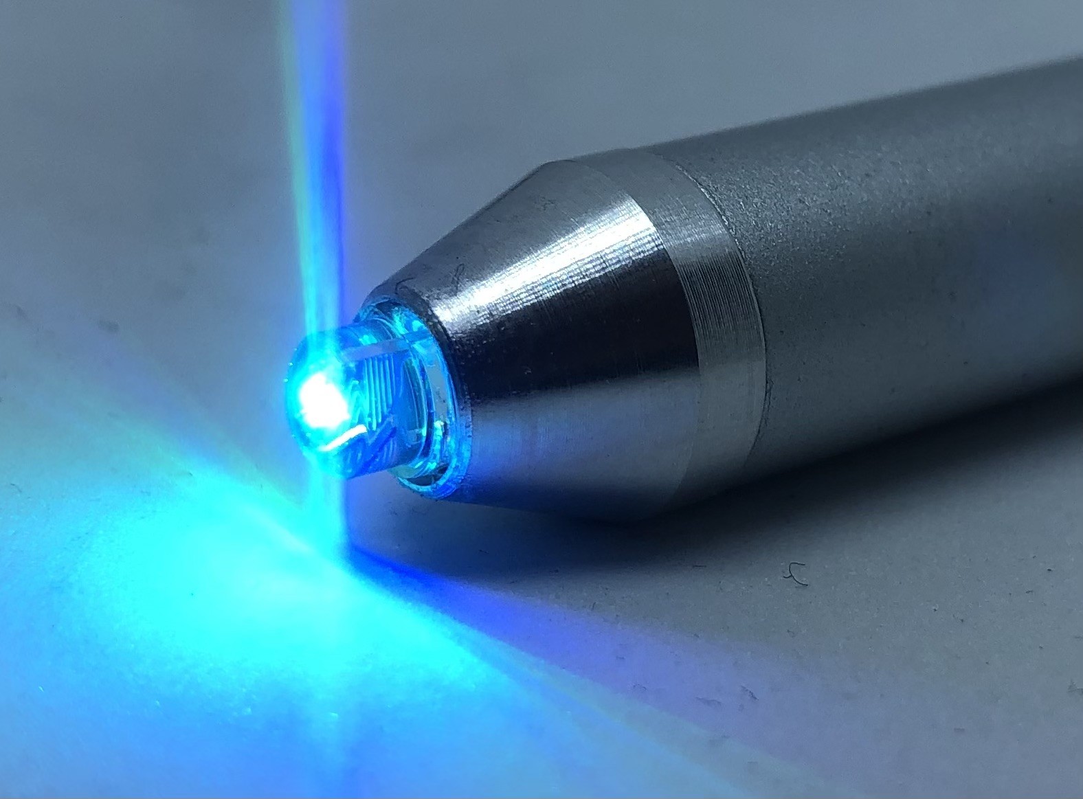 El CROMALUX-Pen está equipado con un diodo luminiscente que emite luz monocromática que en ciclos de 20 segundos aproximadamente cambia de color verde a rojo, azul y diversos colores mixtos para volver al color verde. La intensidad luminosa