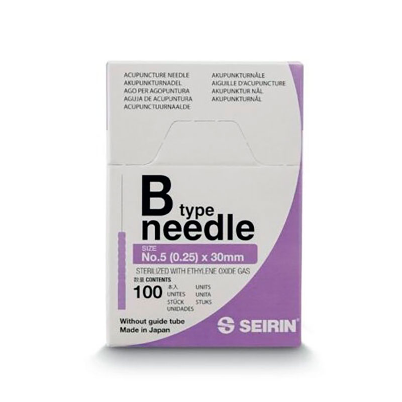 Las agujas de acupuntura de tipo B de alta calidad de SEIRIN Japón son desde varias décadas las agujas desechables líderes a nivel mundial. El mango optimizado según principios ergonómicos y exactamente centrado permite un manejo seguro y confortable. Es de polipropileno, un plástico extremadamente ligero así como compatible con la piel y el medio ambiente y mide 0,2 x 15 mm. La aguja misma está fabricada con precisión de acero especial inoxidable. Su punta está afilada como un diamante, pulida tres veces y recubierta con una capa finísima, por lo que el pinchazo es particularmente fácil para el terapeuta y casi indoloro para el paciente.
