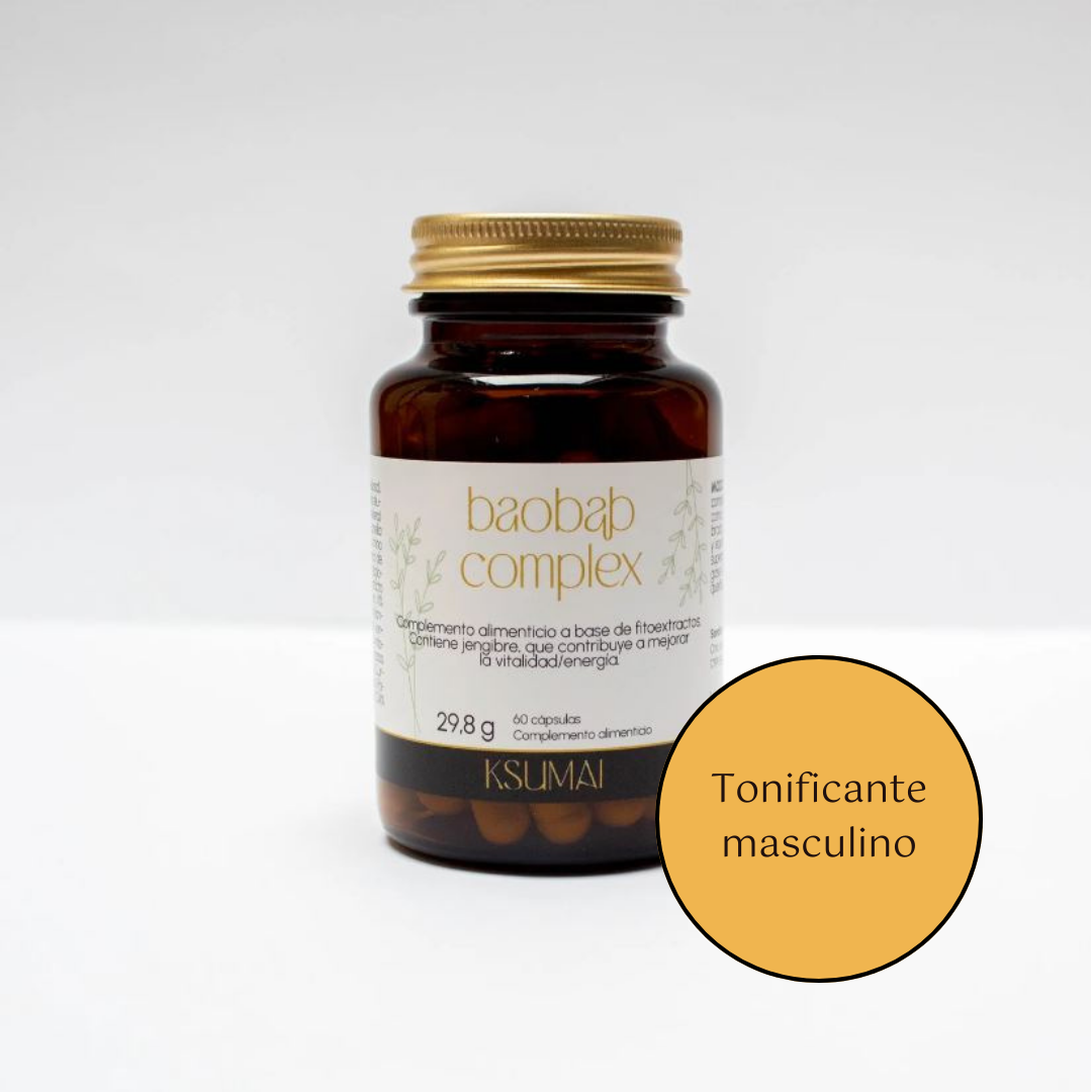 Baobab Complex combina Baobab, Moringa, Comino negro, Semillas de Calabaza, Chanca Piedra, Fenogreco  y Jengibre, ingredientes vegetales tradicionalmente utilizados para apoyar la vitalidad y el bienestar físico. Su fórmula contribuye al metabolismo energético normal
