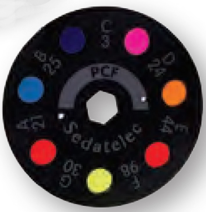 Naranja A21 Rojo B25 Amarillo C3 Rojo D24 Azul E44 Azul F98 Rojo G30