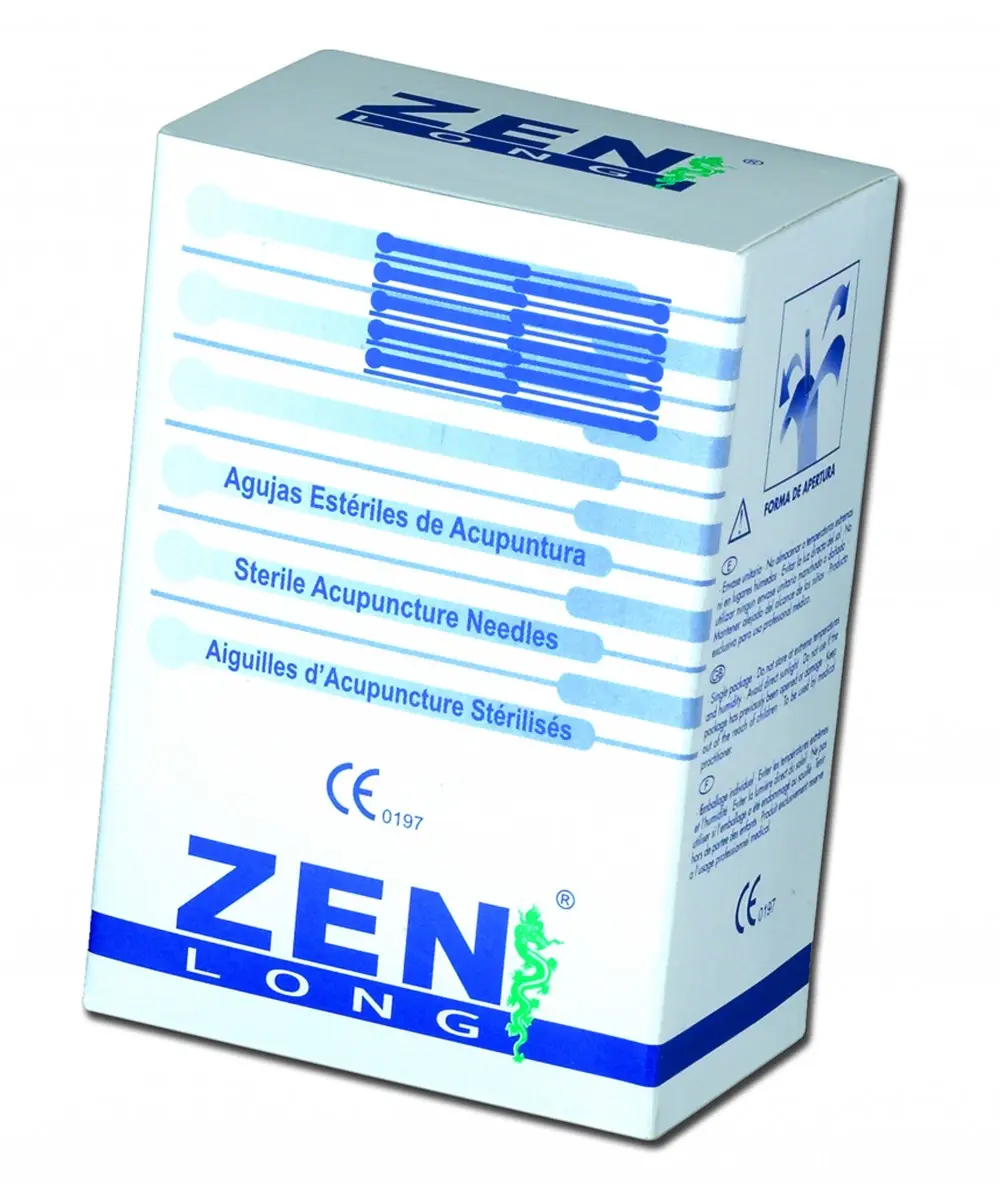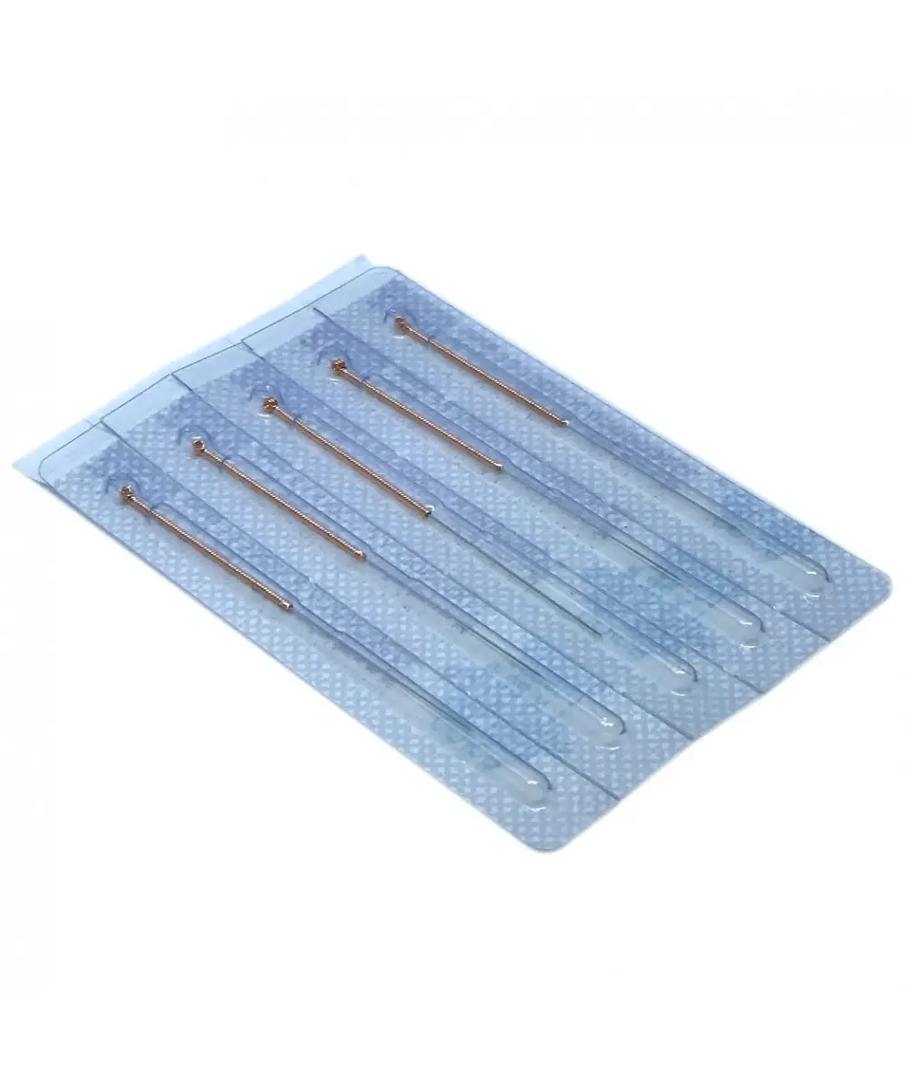 Aguja de Acupuntura tipo Chino con mango bañado en cobre y con cabeza, sin guía.
