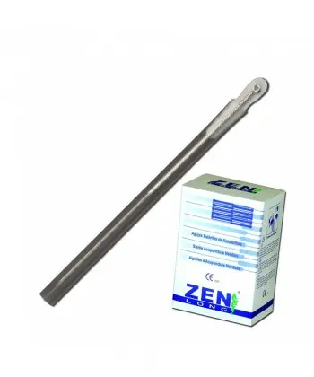 Aguja de Acupuntura tipo japonés con mango de acero, con guía.